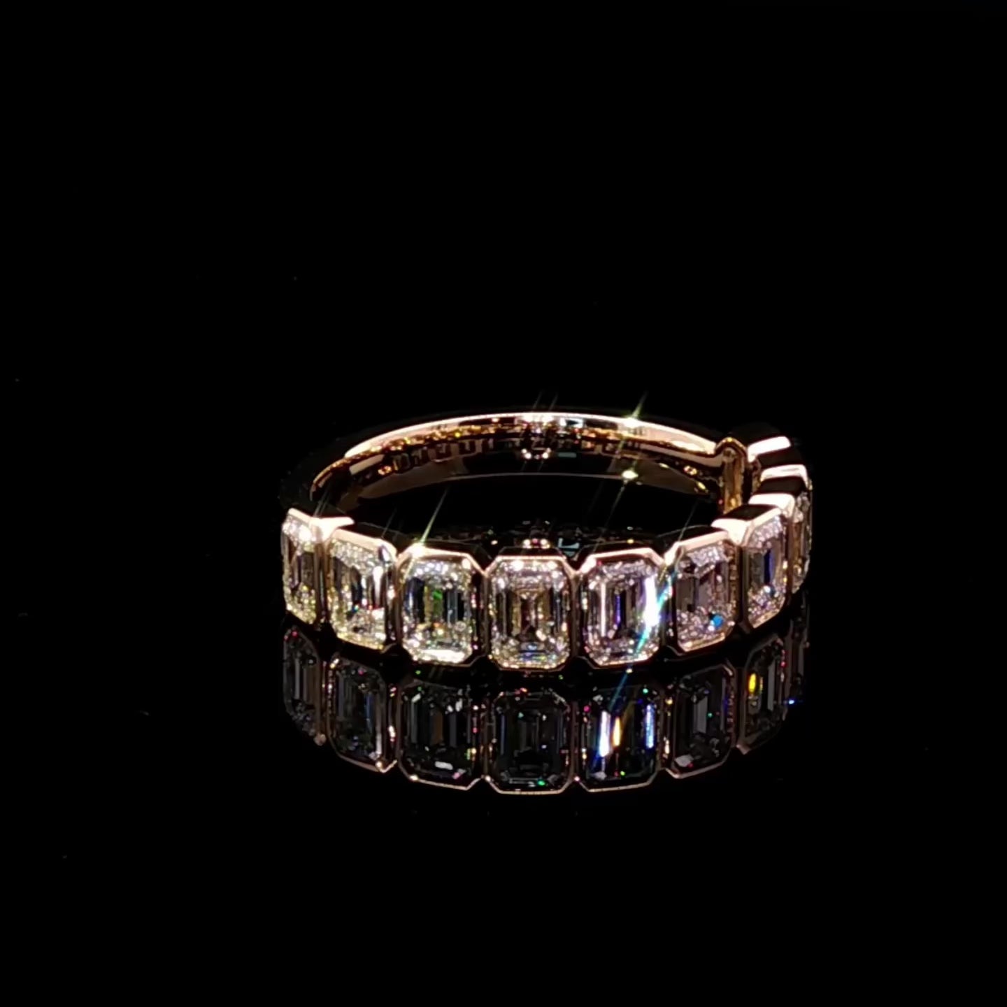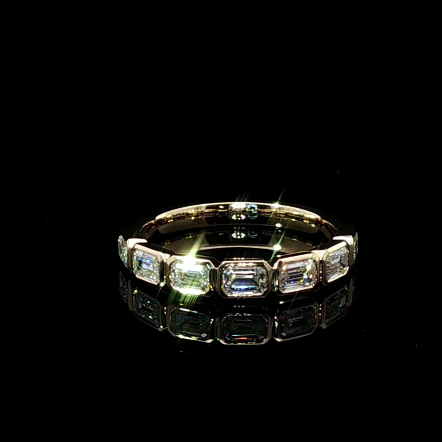Aria 1/2 Band East/West Emerald Bezel Set Wedding/Eternity Ring (Made to Order)